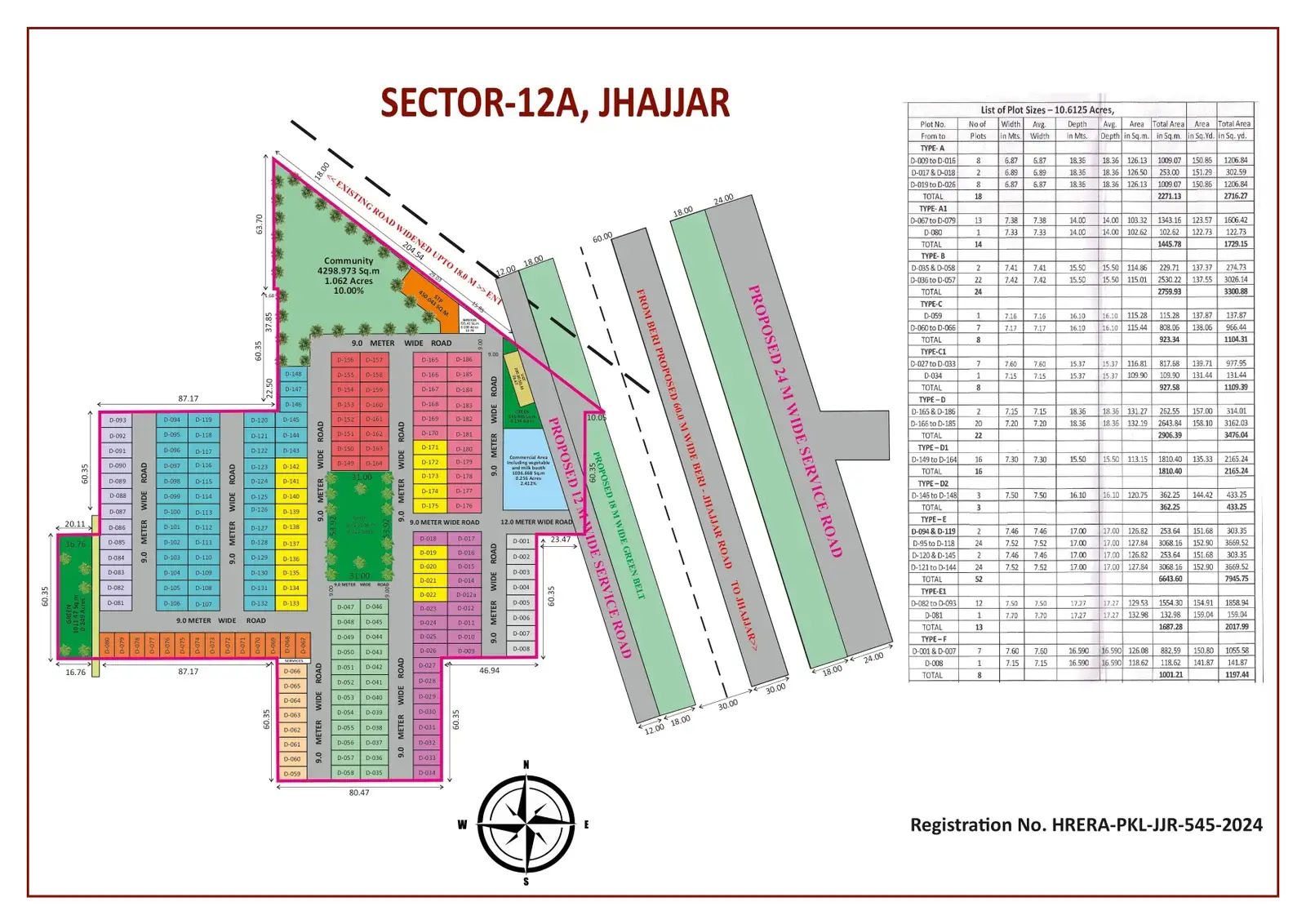 | Sizes (Sq.yrd.) | Sizes (Sq. mtr.) | Registration Amount | 10% Payment within 5 days | 40% Payment within 30 Days | 25% Payment within 90 Days | 25% Payment On Offer of Possession | Total Cost |